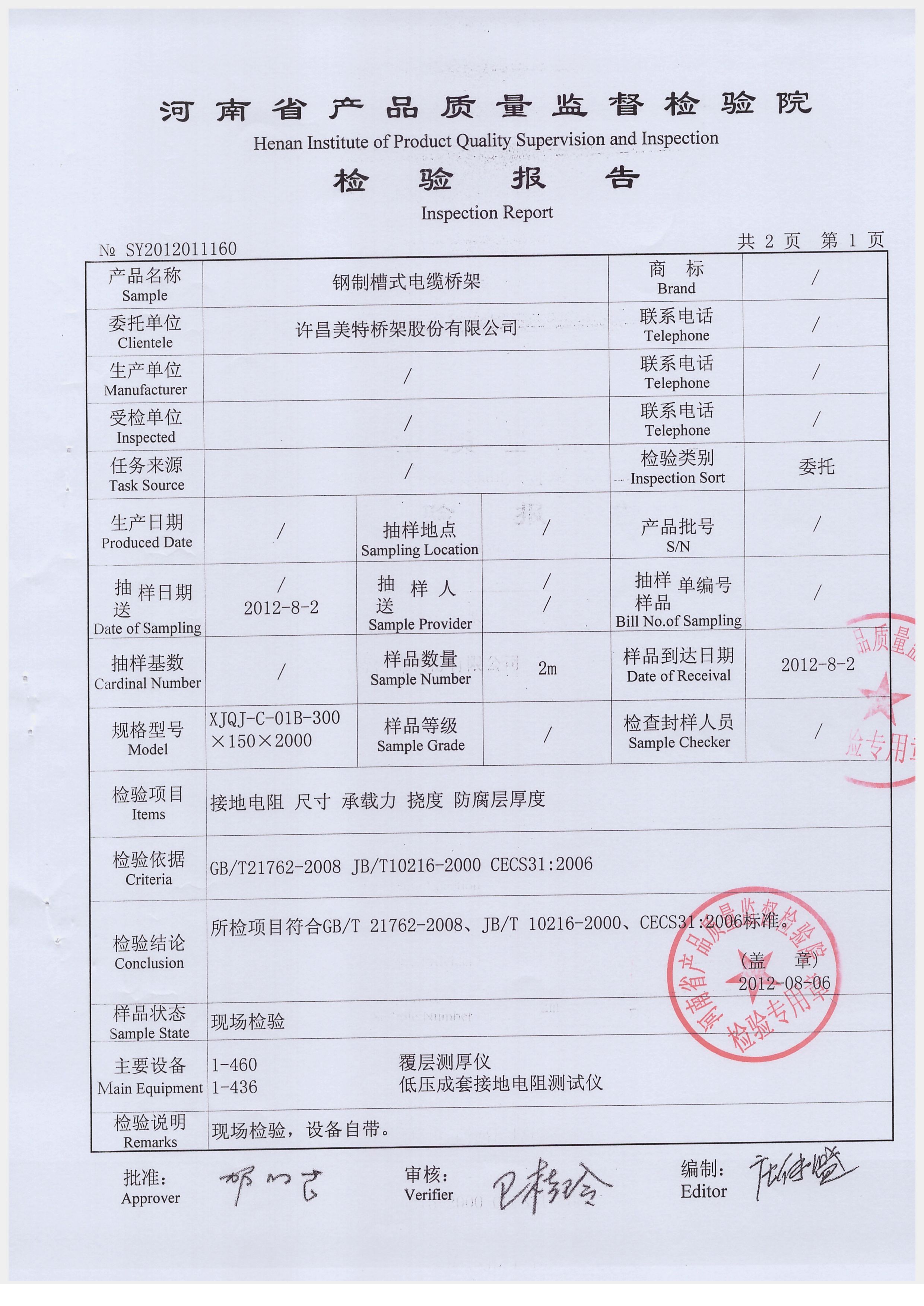 您當前的位置:首頁 > 質量保證 > 檢驗報告 > 槽式熱侵鋅檢驗報告