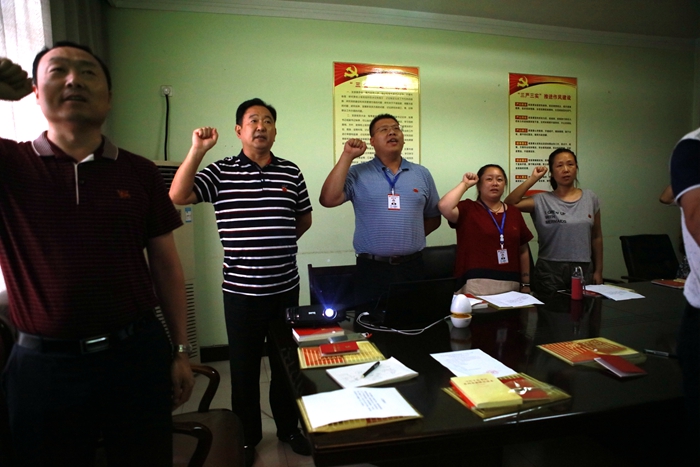 會議上,全體黨員面對黨旗莊嚴的重溫入黨誓詞,“我志愿加入中國共產黨,擁護黨的綱領,遵守黨的章程,履行黨員義務,執行黨的決定,嚴守黨的紀律,保守黨的秘密,對黨忠誠,積極工作,為共-產主義奮斗終身,隨時準備為黨和人民犧牲一切,永不叛黨。”