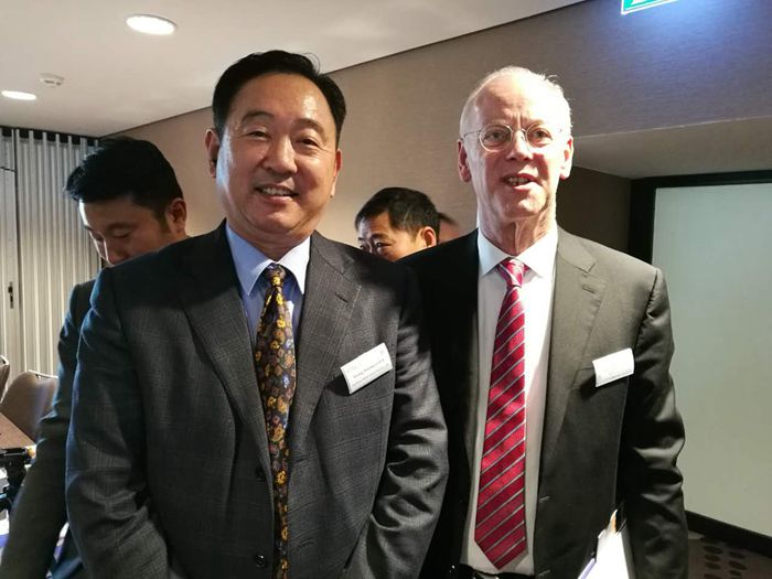 2016年11月28日,許昌美特橋架股份有限公司董事長在德國考察,尋找節能減排新技術的合作,期間美特董事長和德國原國防部長魯道夫沙爾平先生在德國法蘭克福萬豪酒店進行了洽談,并合影留念