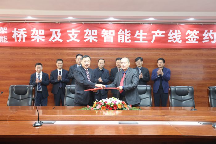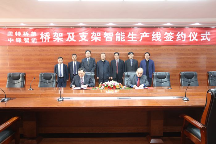 2017年11月16日上午,許昌美特橋架股份有限公司會議室中,美特橋架委托許昌中鋒智能裝備有限公司設(shè)計并制造“電纜橋架及支架智能生產(chǎn)線”的簽約儀式在開發(fā)區(qū)管委會主要領(lǐng)導的見證下舉行。